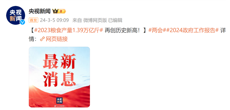 2023糧食產量1.39萬億斤,再創歷史新高!